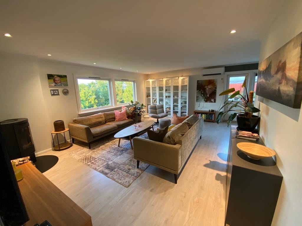 Затишний ідилічний котедж з великою огородженою ділянкою в тихому котеджному районі біля лісу з хорошими можливостями для піших прогулянок, прісна вода з гарними мілкими пляжами для купання та риболовлі в Haukomvannet, на відстані короткої прогулянки. Тут ви прокидаєтеся, оновлюючись під звуки природи вранці, і часто можете насолоджуватися видом на пасуться оленів зовні спальні з чашкою кави на ліжку. Включно з постільною білизною та рушниками. До складу гребного човна включено. Ідеально підходить для сім 'ї з 4 осіб. Огороджена ділянка площею 1500 м² чудово підходить для вас із собакою.