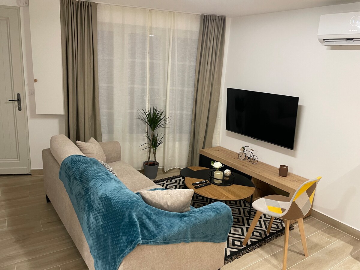 Новий будинок T2, з приватним садом і повністю закритим, тихим тупиком. Безкоштовна приватна парковка перед помешканням. Оснащена садовими меблями, шезлонгом, газовим барбекю. Інтер 'єр помешкання пропонує вітальню на вікні затоки з смарт-телевізором, Wi-Fi, обладнану кухню, одну спальню з ліжком 160 X 200 матраців навісу з пам' яттю, гардеробна кімната. Доступ до великої ванної кімнати, туалету та гідромасажної душової кабіни. Близькість до всіх зручностей та центру міста. Велосипеди за запитом.
