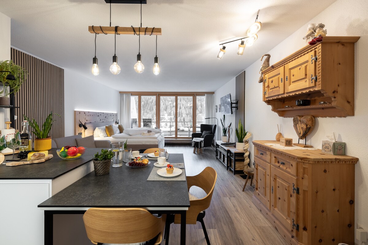 Ласкаво просимо до великої відремонтованої альпійської шикарної студії в парку відпочинку Тулай у Скуолі. Студія розташована на верхньому поверсі біля старого входу в Scuol, який зараз практично вільний від автомобілів і дуже тихий. Студія має особливо простору планування площею 50 кв. м. Безпосередньо від входу в будинок можна зручно прогулятися ідилічною старовинною вулицею Страдун, не долаючи жодних підйомів.