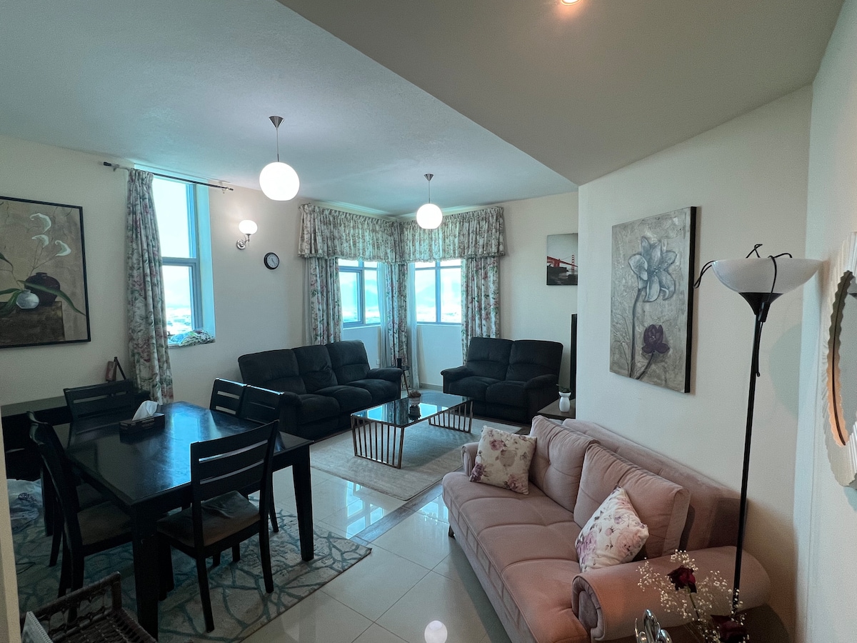 У моїй квартирі є 1 кімната з двоспальним ліжком King Size на 2 особи, а також кімната з двоспальним ліжком на 2 особи та 1 невеликою кімнатою з невеликим ліжком на 1 особу, у всіх кімнатах є ванна кімната та одна ванна кімната у вітальні з зручними диванами. Крім того, є комора з усім необхідним обладнанням для приготування їжі. Моя квартира - це частина готелю The Adress Fujairah, Alaqah. Моя квартира знаходиться на першому повері, де ви можете насолоджуватися балконом