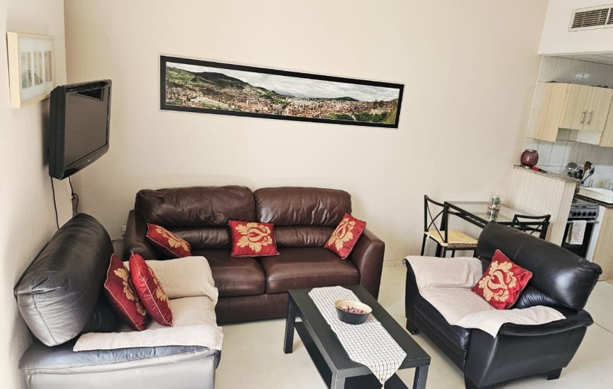 У моїй квартирі є 1 кімната з двоспальним ліжком King Size на 2 особи, а також кімната з двоспальним ліжком на 2 особи та 1 невеликою кімнатою з невеликим ліжком на 1 особу, у всіх кімнатах є ванна кімната та одна ванна кімната у вітальні з зручними диванами. Крім того, є комора з усім необхідним обладнанням для приготування їжі. Моя квартира - це частина готелю The Adress Fujairah, Alaqah. Моя квартира знаходиться на першому повері, де ви можете насолоджуватися балконом