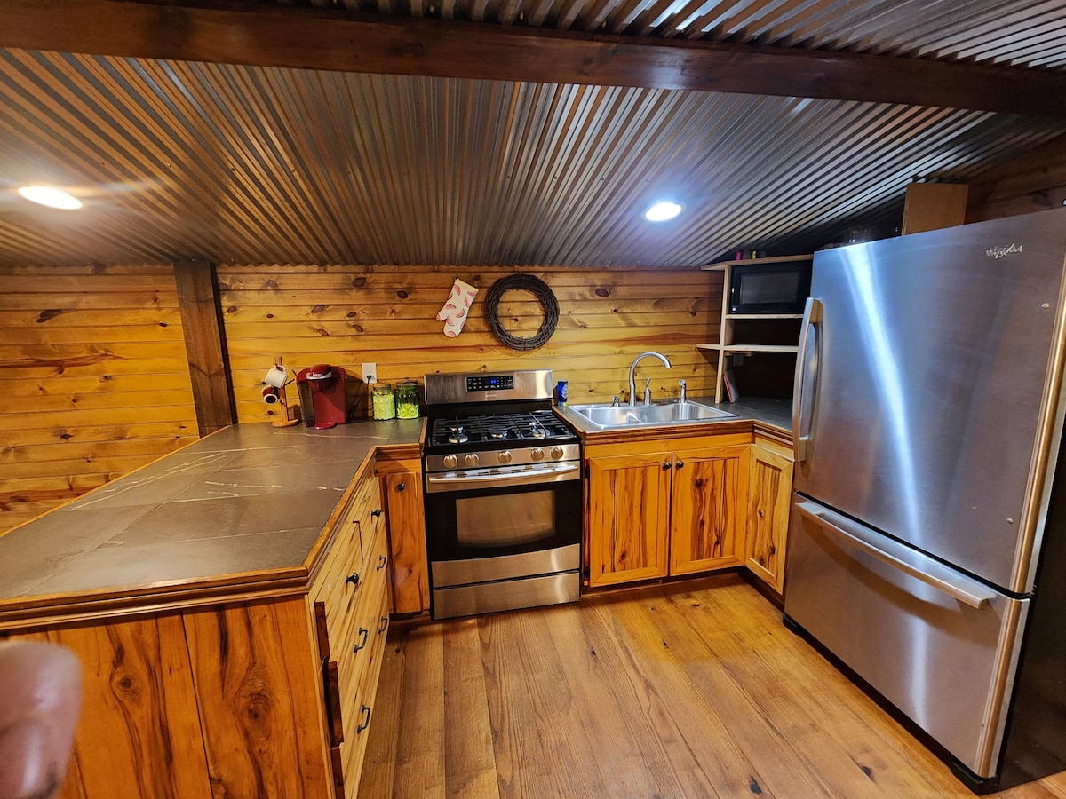 Ви не забудете час у цьому романтичному, незабутньому місці. Насолоджуйтеся 4 акрам усамітнення, що прилягає до стежки вождя Ладіга, і в пішій доступності від стежки Пінхоті. На головному рівні розташована повністю обладнана кухня, ванна кімната та спальний диван. Підніміться спіральними сходами до головної спальні з відкритими балками та сільською олов 'яною стелею. Насолоджуйтеся трьома терасами та відпочивайте в гойдалковому ліжку або гідромасажній ванні та слухайте звуки Літтл-Террапін-Крік.