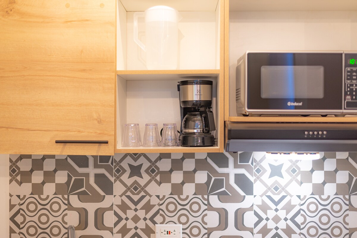 Відкрийте для себе абсолютно новий номер-студію, у якому поєднуються сучасний дизайн і комфорт, усього за кілька кварталів від пляжів Плая-Гайра, Плая-Сальгуеро, Ель-Родадеро та основних туристичних районів. У квартирі є двоспальне ліжко розміру Queen size та двоспальний диван-ліжко, на яких з комфортом можуть розміститися до чотирьох гостей. Повністю обладнана кухня ідеально підходить для короткострокового або довгострокового перебування, а в квартирі також є пральна машина з сушильною функцією, кондиціонер і набір для пляжу з рушниками, стільцями та сумкою-холодильником для відпочинку на пляжі.