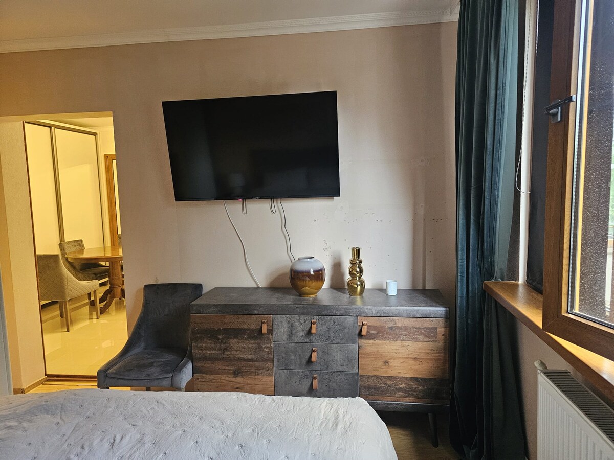 Затишна, світла та привітна квартира, 2,5-3 км від центру, в тихому районі. У квартирі є вітальня з диваном-ліжком, спальня з двоспальним ліжком, повністю обладнана кухня (плита, холодильник, тостер і чайник), швидкий Wi-Fi, телевізор і пральна машина в окремому приміщенні. Ідеально підходить для короткого або тривалого перебування з легким доступом до міста, автобусна станція знаходиться через дорогу від кварталу. Для шопінгу Lidl і Penny знаходяться в 3 хвилинах ходьби. У цьому місці є кондиціонер. 2-й поверх
