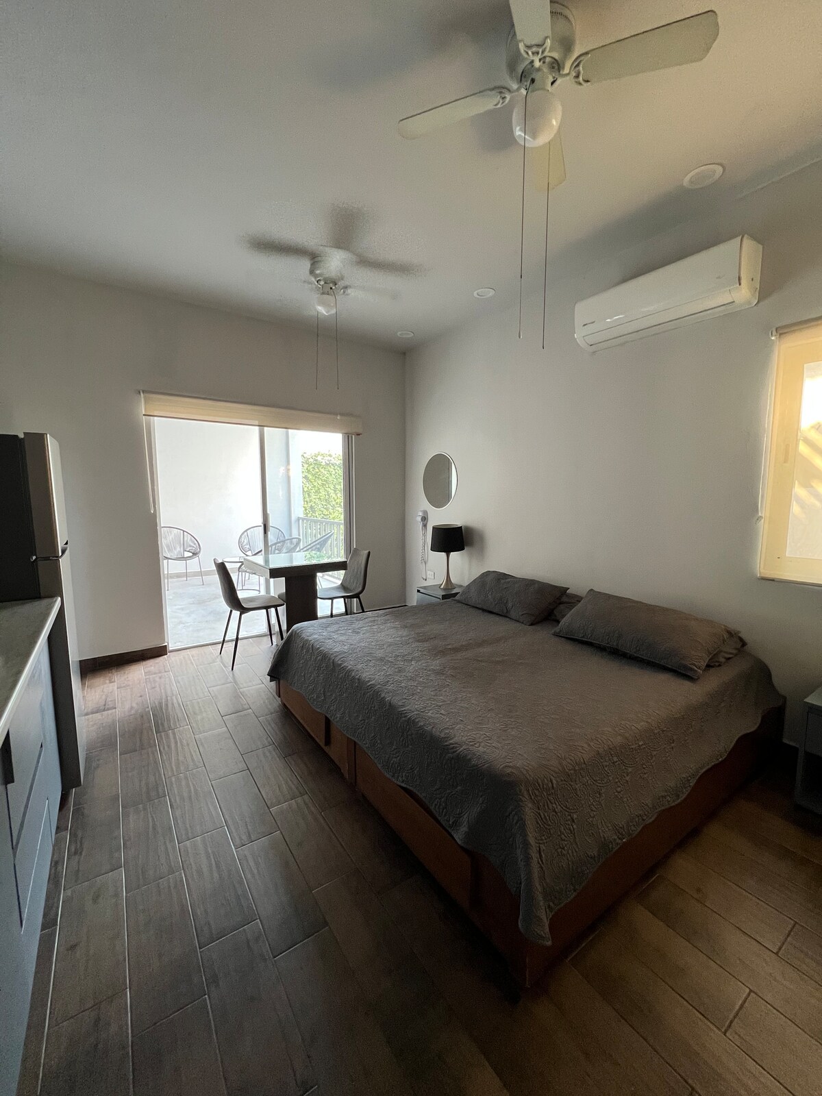 Bienvenido a nuestra master suite, moderna y elegante en una ubicación privilegiada. Esta suite ha sido diseñada pensando en tu comodidad, con una cama King size y una amplia sala de estar para que puedas relajarte como en casa. La suite ha sido cuidadosamente decorada para ofrecerte una experiencia de lujo y confort. Todo está impecablemente limpio y listo para que disfrutes de tu estancia. La ubicación es perfecta, cerca de los mejores restaurantes, tiendas y centros médicos.