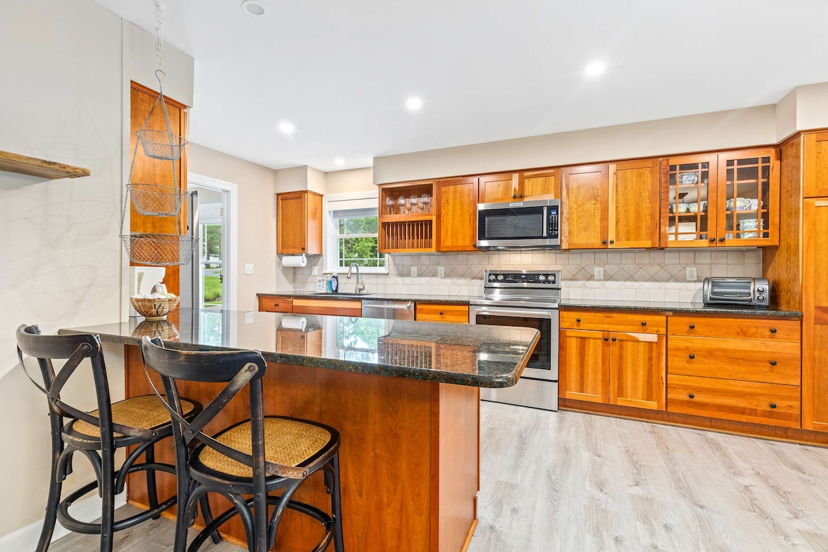 Completely renovated and exquisitely decorated, this one bedroom apartment has a private entrance from the main house and features a modern farmhouse vibe. Fully equipped kitchen with new glass top stove, large walk-in shower and queen sleeper sofa make this perfect for a couple or family. Located 9 miles south of the Bay Bridge, off of Route 8 on Kent Point Road ,this location is convenient for weddings at the Chesapeake Bay Beach Club or Swan Cove. Access to large in-ground pool included.