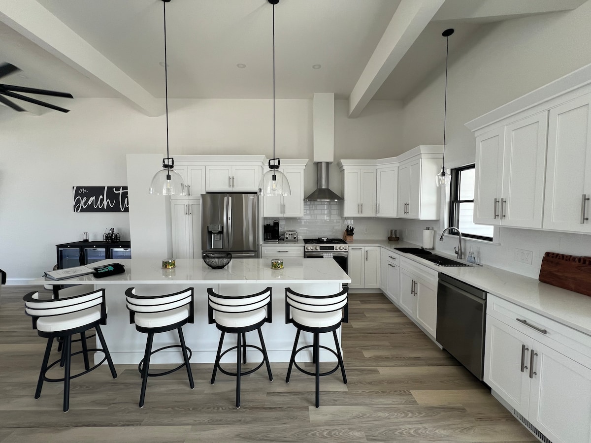 Новобудова з 2024 року. Таунхаус на березі океану з п 'ятьма спальнями, трьома повними/двома ванними кімнатами та ліфтом. На першому поверсі є приватний басейн з підігрівом (закритий до червня 2026 року), душ на відкритому повітрі з повним патіо. У великому гаражі є футбол, шаффлборд, настільний теніс, додатковий холодильник. Третій поверх - це велика відкрита концепція з вітальнею, їдальнею та кухнею. Велика кухонна тераса для гриля та критого столу. Насолоджуйтеся прекрасним заходом сонця та видом на затоку з тераси на даху.