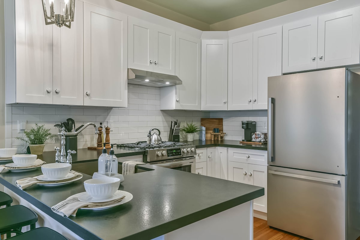 Класична чорно-біла тема з сучасними зручностями. *ГІДРОМАСАЖНА ВАННА, МІСЦЕ ДЛЯ БАГАТТЯ, БАР TIKI - 2 КОРОТКІ КВАРТАЛИ ДО ПЛЯЖУ! * ДОМАШНІ ТВАРИНИ ЗАБОРОНЕНІ* — 5 спальних місць *Приватна ГІДРОМАСАЖНА ВАННА з великою парасолькою *Дві спальні - ліжка king-size в обох * Диван-ліжко queen-size. *1,5 ванна кімната *Кав 'ярня - Nespresso & Pods, крапельний кавник *Пральна й сушильна машини на нижньому поверсі * Надається пляжне спорядження (парасолька, стільці, холодильник, візок) *Пляжні рушники
