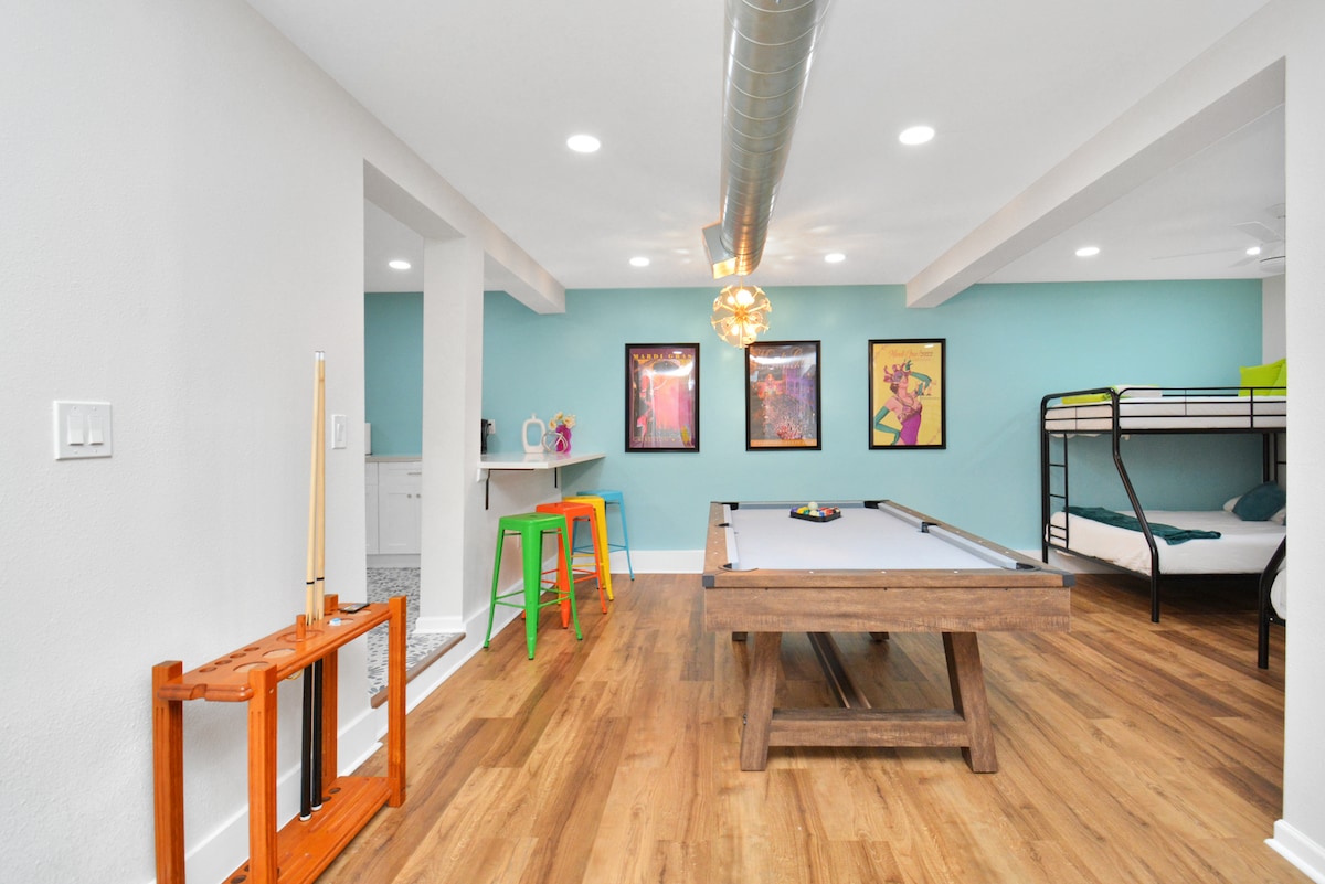 Наш нещодавно відремонтований будинок знаходиться в центрі Галвестона, що робить його ідеальним місцем для відпочинку. Усього в декількох кроках від парадного маршруту Марді-Гра, в декількох хвилинах ходьби від пірсу історичного відпочинку та пляжу, а також в декількох хвилинах їзди від безлічі ресторанів, барів і пам 'яток, ви не можете перевершити це місце! У нашому помешканні є два окремі житлові приміщення та кухні, що робить його ідеальним для двох сімей, які подорожують разом, сімей, які шукають окремі приміщення для дорослих та дітей, або груп друзів!