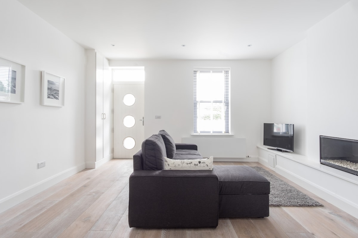 Сучасний лофт у березі моря Salthill. На затишній вулиці всього в 5 хвилинах ходьби від випускного вечора та пляжу та в 2 хвилинах ходьби від магазину на розі. Приватна парковка на вулиці. Яскравий, розумний інтер 'єр, звертаючи увагу на кожну деталь, щоб забезпечити незабутнє перебування. Вітальня відкритої плани з міні-кухнею, висока зона відпочинку з телевізором. Супер зручне, низькопрофільне ліжко розміру King size з усім натуральним волоконним матрацом. Зона домашнього офісу для віддаленої роботи. Окремий двір, що виходить на південний захід, щоб насолодитися сонцем Salthill.