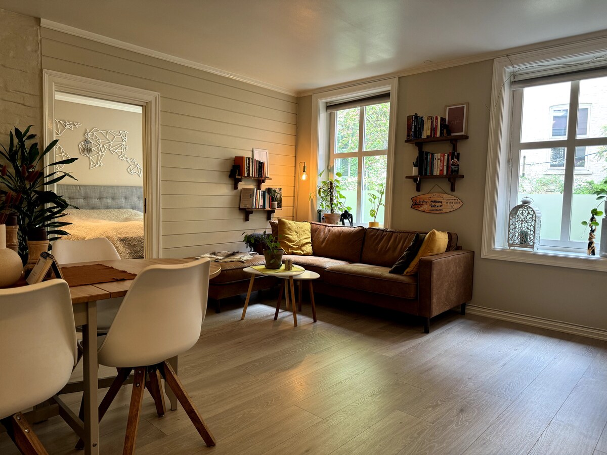 79 кв. м (850 кв. футів!), 2 спальні з двоспальними ліжками, високошвидкісний Інтернет. Балкон! 10 хвилин пішки до залізничного вокзалу / Опери /Музею Мунка/центру міста. Вдумливо оформлений і надзвичайно розслаблюючий кондомініум посеред Grønland (The Williamsburg / Dalston /Neuköln of Oslo), прямо в Ботанічному саду. Ця нещодавно відремонтована квартира художника, показана в кількох інтер 'єрних журналах і є ідеальним помешканням для вашої пригоди в Осло. Спокійний і тихий, 11-футові стелі... це місце, яке ви повинні відчути...