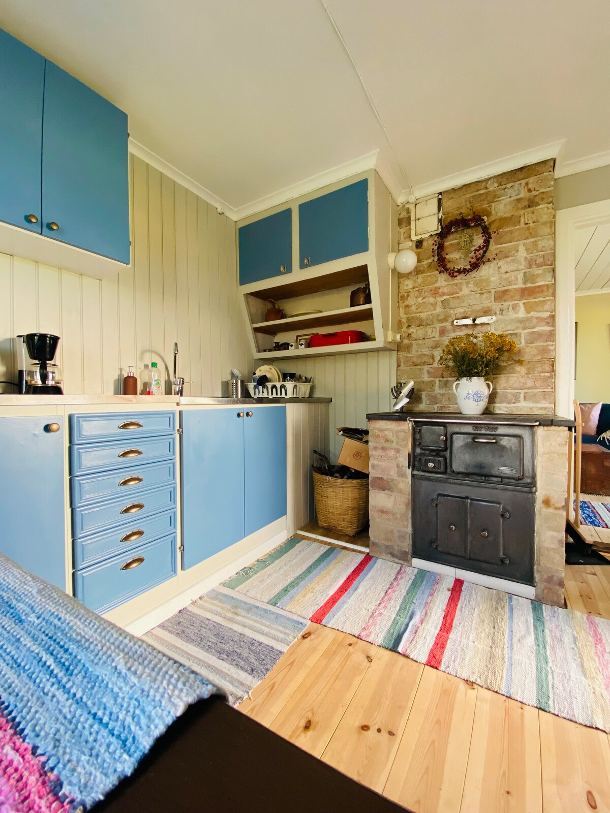 The cottage (‘härbre’ in Swedish) is one of several small outbuildings in a picturesque setting. The building is from the 19th century. The lower floor has been carefully renovated using traditional building preservation methods. There is a kitchenette with cold water, a fridge and a hob. The outdoor toilet is just a few steps away. The shower is in the main building. The forest is just around the corner with good opportunities for shorter or longer walks. Free parking.