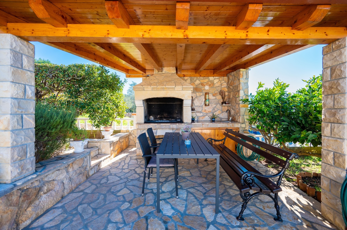 Holiday house Jona is located in a small village in the heart of "Ravni Kotari". The house is located on a 7000 square meter ranch that has a large guest-only swimming pool and is surrounded by vineyards and various fruit trees that guests have at their disposal. The house is ideal for a complete dream vacation where you can afford complete peace of mind. House Jona is new and fully equipped with dishwasher,washing machine,coffee aparat,grill,air conditioning,wi-fi internet, ultra-slim TV, etc.