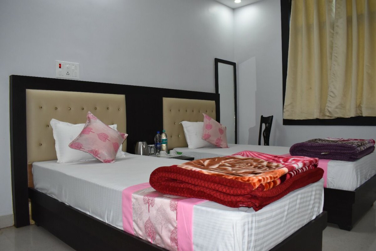 У цій кімнаті, розташованій всього в половині км від Тадж-Махалу, є ліжко king-size або два односпальні ліжка з додатковим ліжком, яке ідеально підходить для 3 гостей. Наш професійний сервіс і найвищий рівень комфорту завоюють вас на той момент, коли ви пройдете крізь наші двері. З нашого басейну на даху відкривається приголомшливий вид на Тадж. У готелі є ліфт і два ресторани на території. Увійшовши до своєї кімнати, вас зустріне розкішна обстановка зі стильним декором та практичними зручностями. Вітаємо!