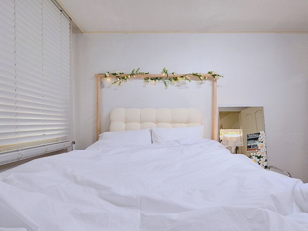 Вона розташована в рівнинній місцевості за 5 хвилин від станції «Балсан» і за 5 хвилин ходьби від автобусної зупинки аеропорту, тому початок і кінець вашої подорожі будуть комфортними.✨ Навколишній район повний ресторанів, кафе, торгових приміщень та зручностей, тому ви можете насолоджуватися відпочинком і приємним перебуванням протягом усього вашого перебування. ✨ У затишному інтер’єрі дерев’яного тону є 43-дюймовий смарт-телевізор, Wi-Fi, кондиціонер, пральна машина, кухонна техніка та посуд, щоб ви могли почуватися як вдома. 🌙 Ми регулярно щомісяця проводимо професійний карантин Cesco, і ми робимо все можливе, щоб підтримувати безпечне та приємне проживання.🌿 Вхідні двері обладнані цифровим дверним замком, тому ви можете безпечно та комфортно заселитися. 1 хвилина пішки: магазин CU 5 хвилин пішки: універмаг NC, Starbucks, Twosome Place, Daiso 10 хвилин пішки: лікарня жіночого університету Іхва Лінія 5, станція Balsan → Gwanghwamun, Yeouido та Jongno 3-ga без пересадки Обов’язково перевірте ❗️оголошення нижче. 🎈Це помешкання зареєстроване та функціонує як юридична компанія для спільного користування помешканням для корейців через особливу містику.
