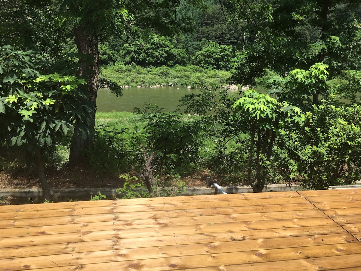 У горах Хваясан у Сеоджоні, Янпхьон, Кьонгі, від розв'язки Сеоджон перетніть долину Бьокге та проїдьте 7 км по національній трасі. Коли ви під'їдете до S-подібної дороги Hwangto House з лівого боку, ви побачите свій власний цілющий ханок із червоної глини на території під відкритим небом. Чотири сезони - це подарунок. Навесні Hwangto House, Приємно, коли є стежка, де цвіте заспокійливий холод, а влітку – ігри у воді в прохолодній долині, овочі сам і барбекю, тераси, відпочинок у гамаку, Восени тут можна насолоджуватися каштанами, гуджіпонгом, трекінгом серед листопада в Хваясані, багаттям у залізній жаровні, А взимку – сауна в лесовій кімнаті на дубових дровах, щоб зігріти тіло, позбутися холоду та втоми ~ ~ Приватне прихисток у затишному місці на лоні природи для відпочинку. Hwangto House – це справжній лесовий будинок, побудований із витриманої сосни, лесу, водоростей та порошку деревного вугілля. Hwangto House, що тихо розташований біля підніжжя гори Хваясан, ідеально підходить для відпочинку. 15-кілометрова трекінгова траса сосновим лісом за будинком до греблі Чхонпхьон – це прихована дорога класу «люкс», якою легко може насолодитися кожен. Грайте у власному потоці, Медитація в сосновому лісі, гамак тощо. Природа – це дар у всі чотири пори року.