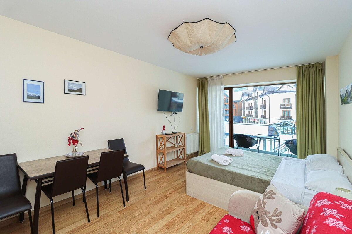 Квартира з затишним балконом у найкращому місці з можливою швидкістю Інтернету 20 Мбіт/с та кабельного телебачення. З затишного балкона відкривається фантастичний вид. Будинок стоїть прямо на лижних схилах, дуже близько до першого ліфта, лижні траси в 30 м. (всього одна хвилина ходьби). Відстань від квартири до ресторанів, великого ринку, офісу поліції, автовокзалу, таксі знаходиться в пішій доступності (близько 30-50 м.). На 1-му поверсі блоку поруч з кімнатою безпеки можна знайти прокат гірськолижних курортів та продуктовий ринок. Ласкаво просимо:)