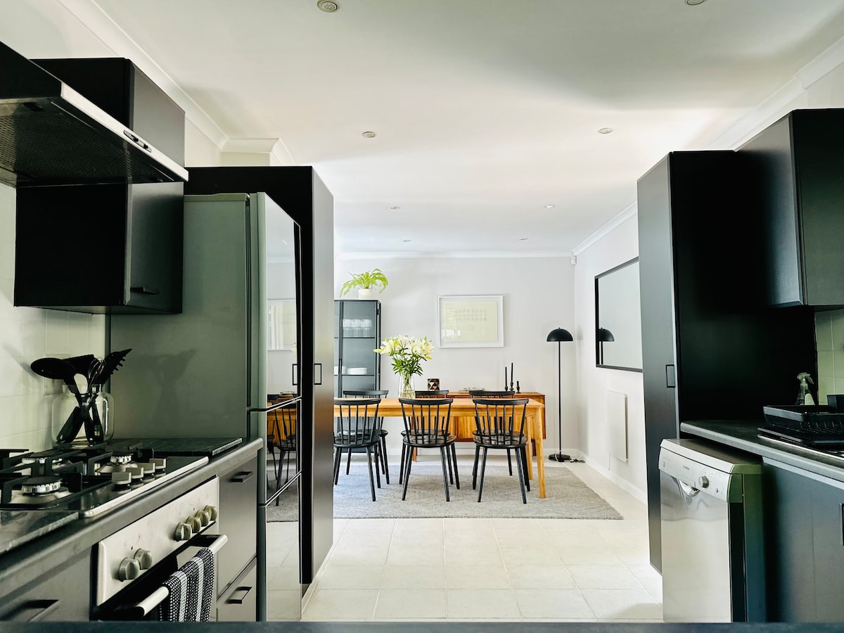 *Рекомендовано в справжніх простих і домашніх журналах* Поверніться на Airbnb після 4-місячного повного ремонту. Красиво та еклектично оформлена, простора та бездоганна квартира в одному з найпопулярніших районів Кейптауна. Повністю мебльоване та безпечне помешкання з усіма зручностями для комфортного перебування. Розкішні краєвиди на місто та набережну. Поруч із основними пам 'ятками: 2 хвилини ходьби до вулиці Клуф (популярні бари, кафе та ресторани); 5 хвилин їзди до пляжів Кемпс-Бей та Кліфтон; 3 хвилини їзди до Lions Head & Table Mountain.