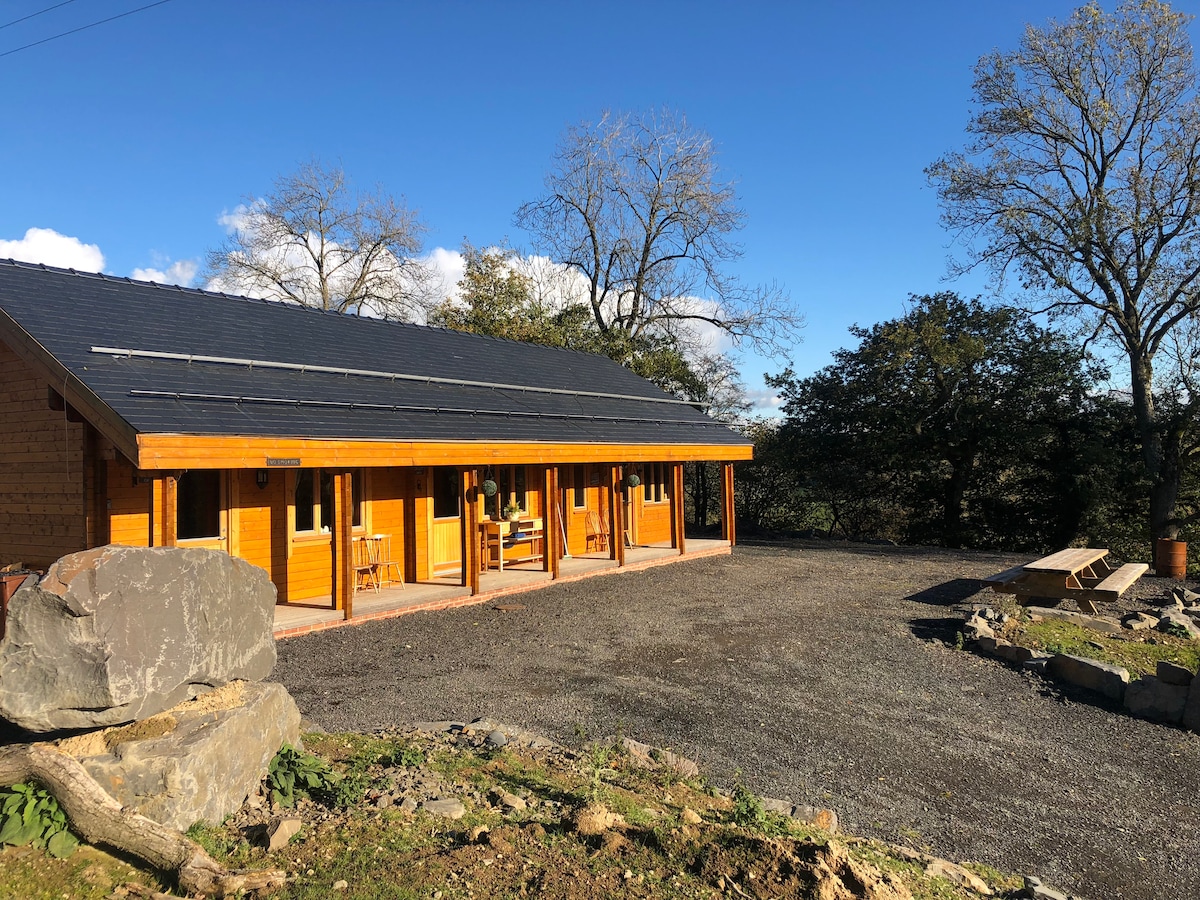 Наша стильна, компактна дерев 'яна капсула для двох осіб, розташована в красивому оточенні, ідеально підходить для відпочинку від повсякденної метушні. Гостюйте з нами на нашій сімейній фермі та розслабтеся під спокійні звуки струмка внизу, насолоджуйтеся мальовничими заходами сонця з власної гідромасажної ванни на дровах або досліджуйте пагорби Монтгомеришира з пішохідними доріжками прямо біля вашого порога, а Оффас-Дейк - всього в кількох кроках. З нетерпінням чекаємо на ваш приїзд!
