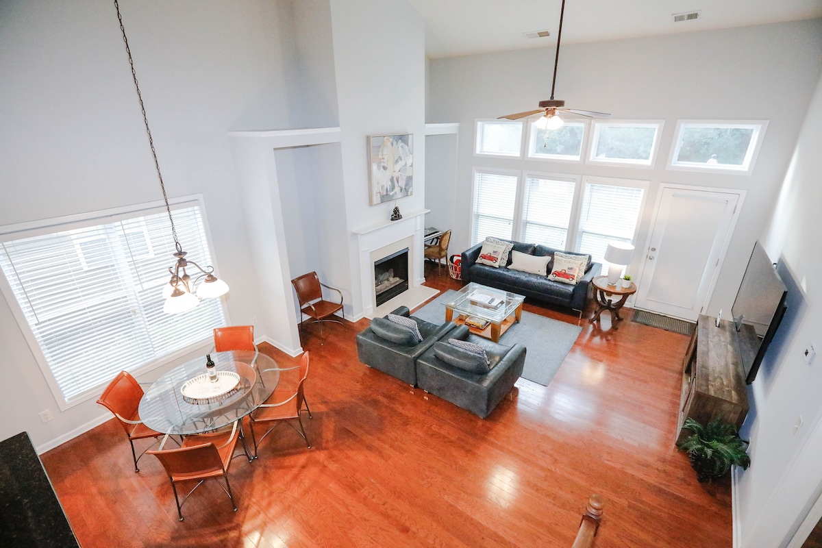 Повністю оснащений новими меблями! У цьому помешканні розташована велика головна спальня та ванна кімната на головному поверсі. На другому поверсі розташовані 3 спальні та лофт-офіс із готовим принтером. Ви матимете доступ до кухні з усім кухонним приладдям, необхідним для її приготування. У помешканні є зона для сніданку, їдальня на 6 осіб, де можна насолоджуватися їжею на свіжому повітрі. Помешкання розташоване недалеко від виходу 107 від шосе I-85, магазинів, ресторанів і в 18 милях на північ від центру Атланти.