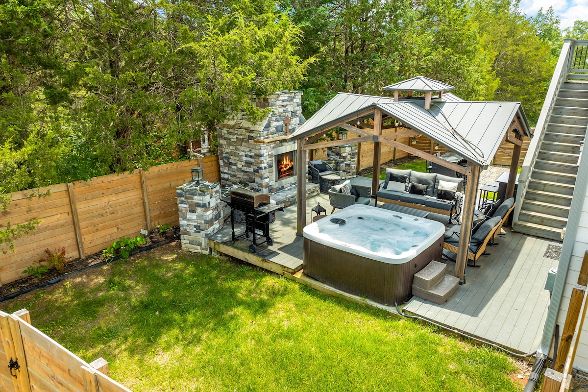 НОВИЙ сучасний зруб! В 15 хвилинах від Доллівуду. Отримайте найкраще з обох світів! Ласкаво просимо в Hidden Haven. Нещодавно побудований 3-поверховий зруб, зручно схований у Смокі-Маунтинс Теннессі. У нас є критий басейн, гідромасажна ванна та зона відпочинку! Ви маєте доступ до невеликого озера, яке чудово підходить для риболовлі! Телевізори Roku ідеально підходять для потокового передавання, просто візьміть із собою паролі. Насолоджуйтеся стейком на грилі, коли качаєте на задньому ганку, і насолоджуйтеся цим ідеальним гірським відпочинком!