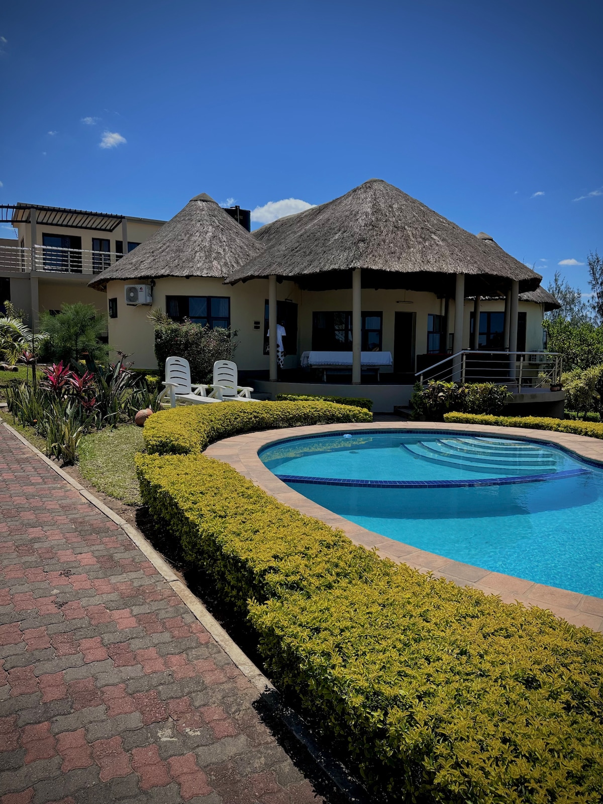 Вілла має 3000 квадратних метрів житлового простору та рівну площу захищеного простору. Це екологічно чистий будинок, який використовує сонячну енергію (90% загального споживання енергії), розташований у сільській місцевості, розташований за 20 км від Чіденгеле на пагорбі біля озера Нгамбавале, в оточенні саду з деревами та невеликим овочевим органічним садом. Навколишня краса, яку надає озеро Нгамбавале та корінний ліс, забезпечує гостям незабутній захід сонця.