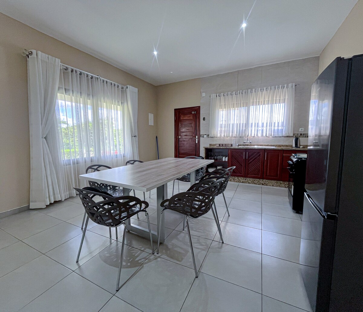 Відпочиньте в раю та насолоджуйтеся найкращим узбережжям Мозамбіку в цьому чарівному будинку на озері в Чіденгеле. Цей спокійний відпочинок, оточений пишною природою та ніжним вітерцем, пропонує все необхідне для відпочинку, відновлення зв’язку та відновлення сил. Прокиньтеся, насолоджуючись захопливими краєвидами на лагуну, випийте ранкову каву на затіненій веранді та проведіть день, досліджуючи білі піщані пляжі, каякінг або просто відпочиваючи в тропічному саду. Ідеально підходить для сімей, пар або груп друзів. 🌴☀️🌊