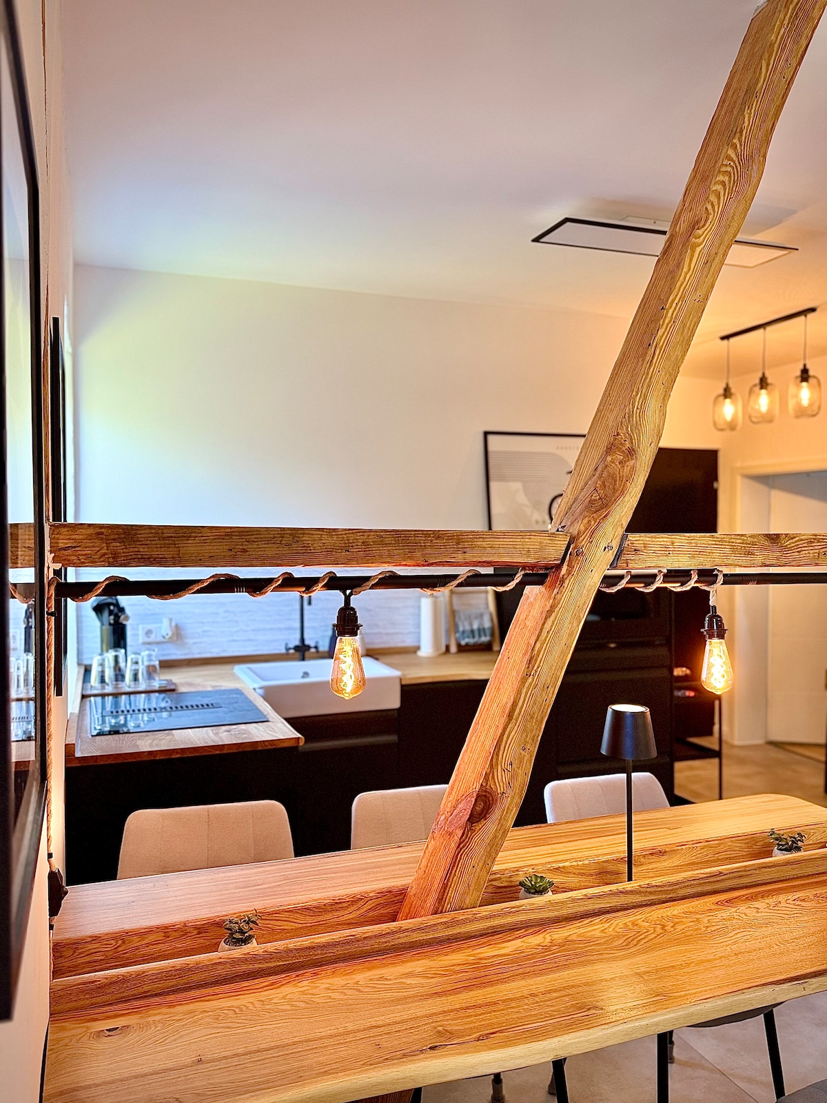 Особливе місце для розміщення з характером лофту. Лофт, оформлений з любов’ю до деталей, з двоспальним ліжком і диваном-ліжком для 3–4 осіб. Простора ванна кімната з ванною/душем. Відкритий простір із кухнею для самообслуговування. Приватний простір на відкритому повітрі зі столом і садовим диваном. Незважаючи на спільне майно з історичним будинком, повна незалежність та приватність. Для любителів природи ідеальне місце відпочинку на краю лісу. 8 хвилин до озера Балденей. Громадський транспорт (5 хвилин до автобуса/14 хвилин до швидкісної залізниці)