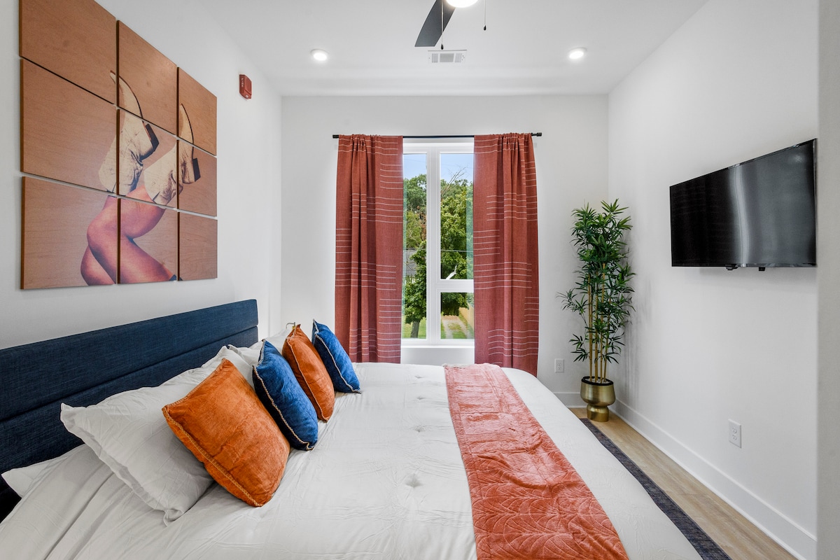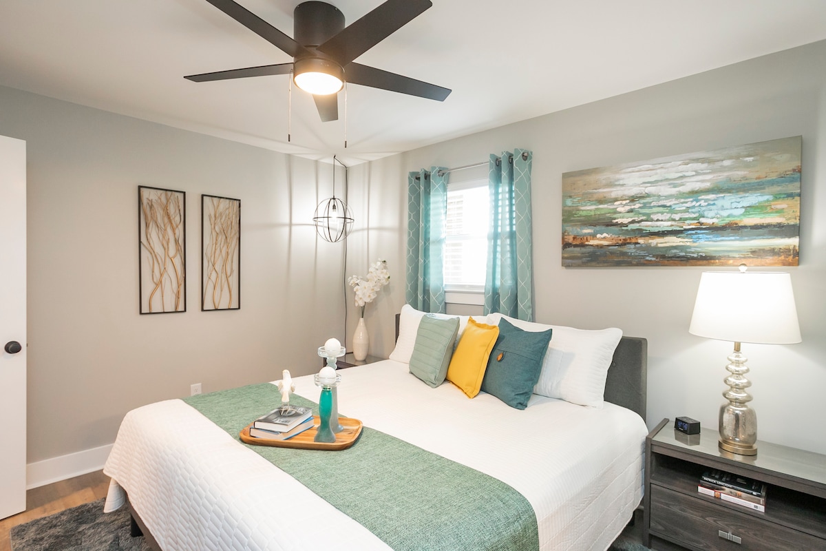 Ідеальне місце для проживання, щоб почуватися як удома і все ще бути посередині всього, що може запропонувати Нешвілл. Ідеально підходить для пар, сімей з 4 дорослих та бізнес-мандрівників. Красива головна ванна з пральною та сушильною машиною. Включає ковдри, рушники та приладдя. Гардеробна/гардеробна кімната. Кухня з Keurig, мікрохвильова піч і холодильник. (Без духовки/варильної панелі). Ліжко King Size і два односпальні ліжка. Потокове передавання фільмів на великому екрані. (Примітка. Обов 'язково введіть правильну кількість гостей)
