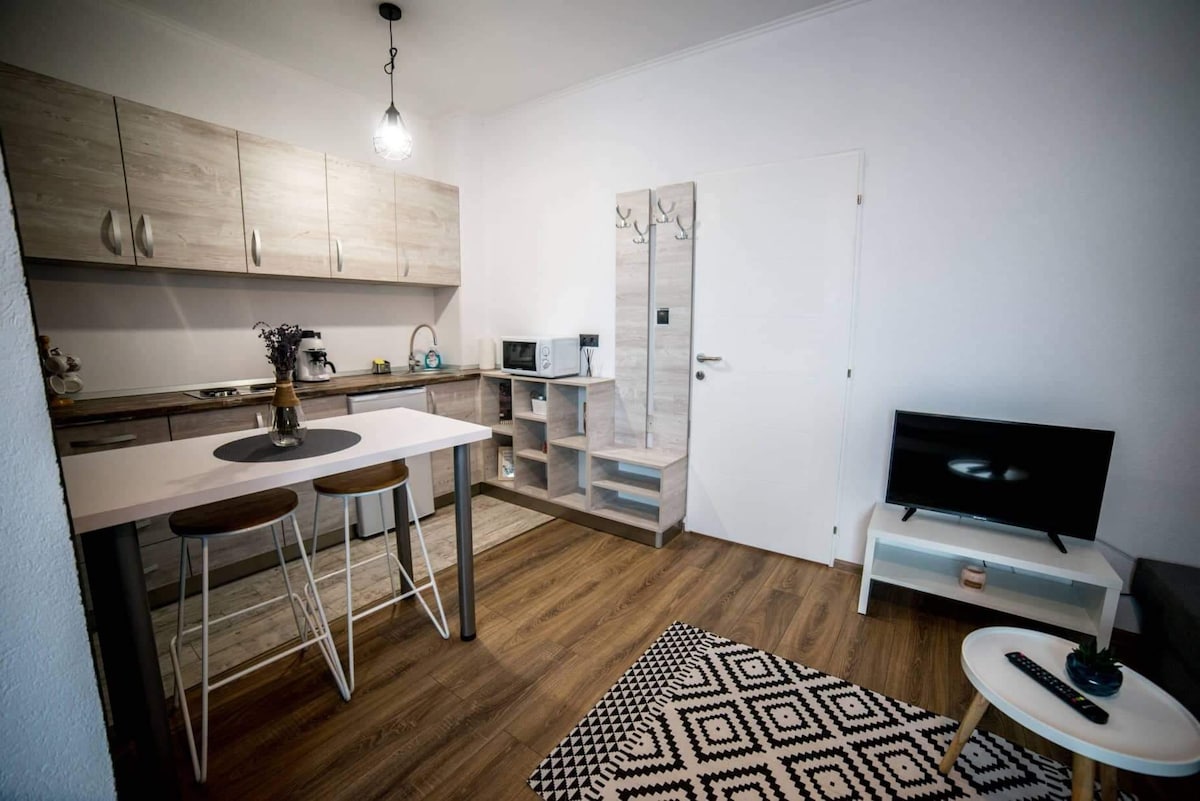 Modern, bright apartment in the heart of the city, with everything just a few steps away. Cafes, restaurants, attractions – everything is within easy reach, yet a peaceful place to return to after a long day. The apartment is comfortably furnished, ideal for couples or small families. Whether you are sightseeing or relaxing, you will feel at home here. Simple, clean, – just what you need for a carefree stay.
