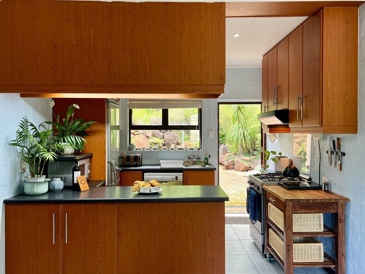 Схований на схилі гори з видом на навколишні гори. Котедж Protea - це сімейний котедж відкритого плану з серцем котеджу, що виходить на дерев 'яну терасу – ідеальне місце для спостереження за заходом сонця. У котеджі можуть розміститися до чотирьох осіб: одна велика спальня в стилі студії відкритого планування на першому поверсі та відкритий лофт на верхньому поверсі з двома односпальними ліжками, просто ідеально підходить для сім 'ї з 4 осіб. Дизайн студії дозволяє переходити від добре обладнаної кухні до зони відпочинку та спальні.