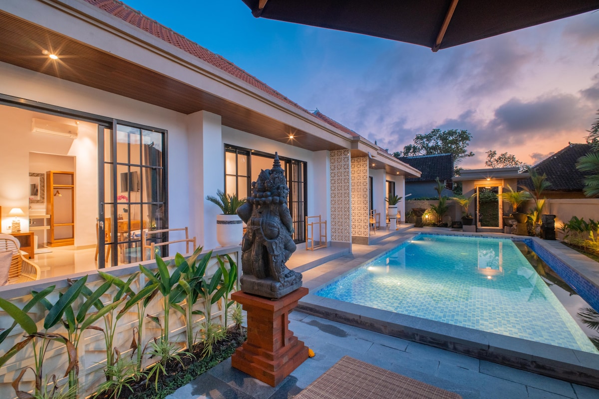 Вілла Angga Sari обіцяє справді омолоджуючі враження для мандрівників, які шукають сучасне, розслаблене та комфортне перебування. Ви відчуєте себе як удома, щойно прибудете сюди❤️ * 2 спальні та 2 ванні кімнати з туалетними приналежностями * Повністю обладнана кухня. * Зона відпочинку на відкритому повітрі, щоб насолодитися теплою балійською погодою * Приватний басейн площею 3,5х6 з шезлонгом, де можна насолоджуватися автентичною індонезійською кухнею * Wi-Fi зі швидкістю 100 Мбіт/с і смарт-телевізор