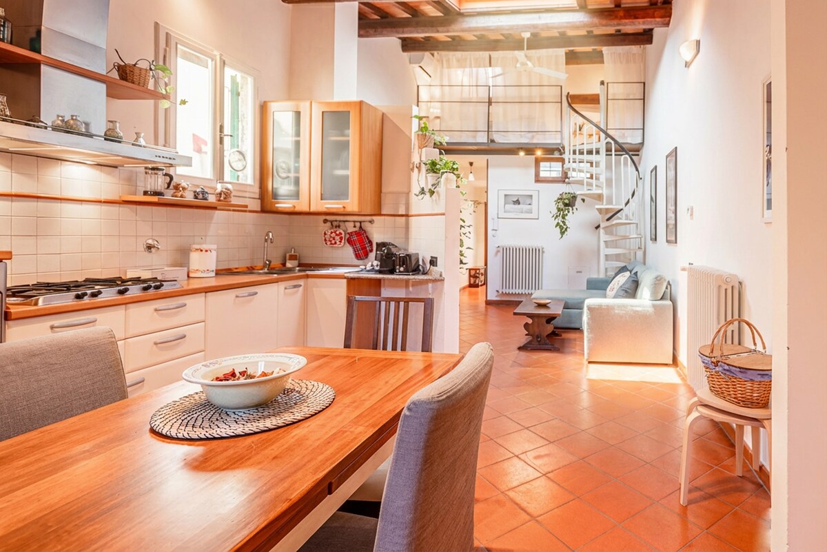 У центрі історичного центру Флоренції стоїть ця чудова квартира площею 90 м2. Завдяки розташуванню та чудовому краєвиду з видом на Флоренцію ви одразу відчуєте себе частиною міста. Квартира знаходиться в двох кроках від Понте-Веккьо і, отже, недалеко від усіх пам 'яток Флоренції. N.b. Квартира розташована на високому місці, і, щоб дістатися до неї, є підйом і два сходинки, щоб піднятися