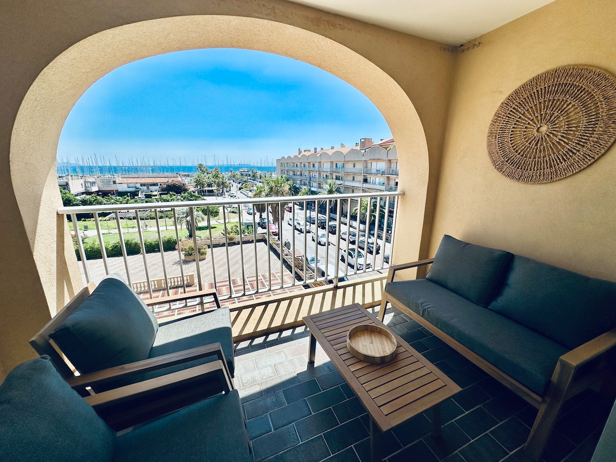 У тихому помешканні з парком, чудова маленька квартира з 2 великими терасами (на півдні та північ, що дозволяє знайти сонце та тінь), в 10 хвилинах ходьби від прекрасних пляжів Бадін і Альманар (5 хвилин на велосипеді). Незалежна спальна зона (з вікном і дверима) та диван-ліжко (для можливої третьої особи) у вітальні. Відкрита та обладнана кухня, невелика лоджія с вікном у бухту, що виходить на терасу, внутрішня вітальня. Посудомийна машина, пральна машина, доступні 3 велосипеди:)