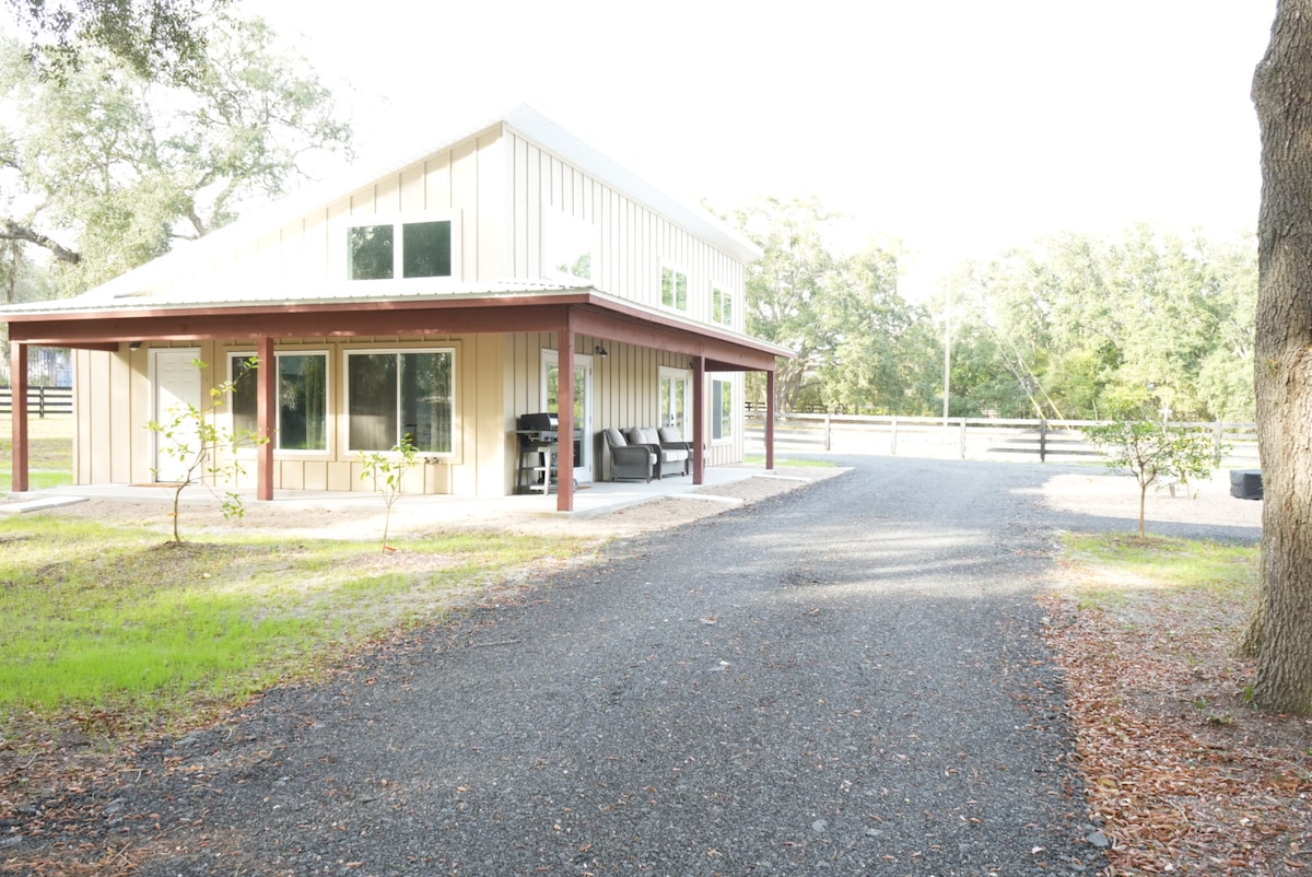 This simple green and open property is conveniently located VERY near many beautiful springs and paddling trips on the Sante Fe river. The home includes a full kitchen with stove, cooking essentials, Keurig and a couple complementary coffee pods. There is also a fridge/freezer, and laundry area with washer and dryer. Two TV’s, a 55 inch and 40 inch. The wifi is lightning fast. Outside in the backyard there is a gazebo with a picnic table. There are also two carports to park in.