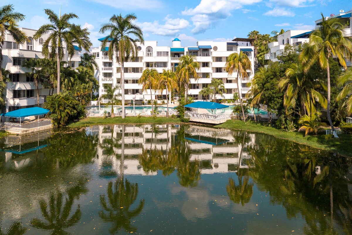 🏡 Ця затишна квартира недалеко від центру Жирардо пропонує 3 спальні, 2 ванні кімнати, криту парковку, кондиціонер у вітальні та головній кімнаті, зону одягу, повністю обладнану кухню, їдальню з 6 кіосками, диван-ліжко king-size, стільці, великий балкон з їдальнею на відкритому повітрі та барбекю. 🛏️ Матраци для найкращого відпочинку! ✨ Насолоджуйтеся 4 басейнами для дорослих, 2 для дітей, тренажерним залом та ігровою кімнатою з боліраною, більярдом і пінг-понгом. 🎱🏊♂️