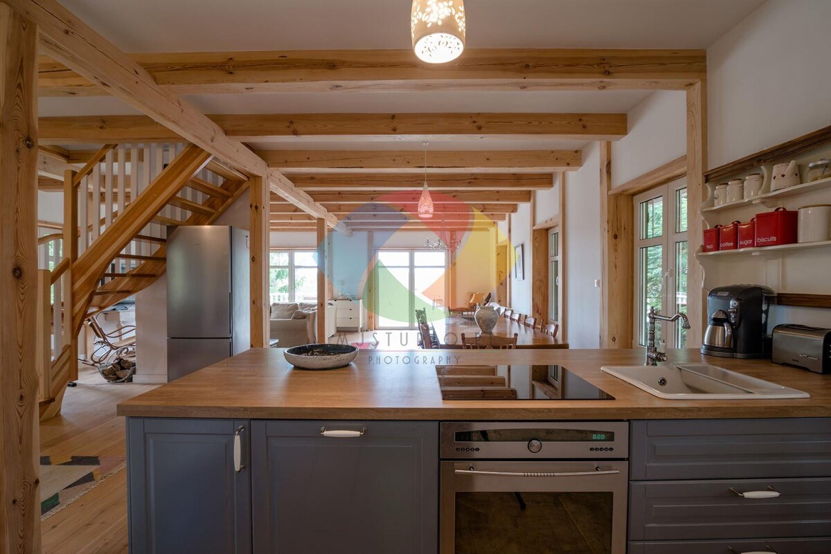 Masuria is a beautiful region of Poland where natural lakes surround us on all sides. For us, contact with the ubiquitous Masurian nature is especially important. That's why only six houses are located on a large area at comfortable distances for guests. The glass in the living room and the spacious terrace provides unique views regardless of the time of day or year (the houses have a fireplace and central heating). The shared area consists of extensive lawn areas and a vegetable garden.
