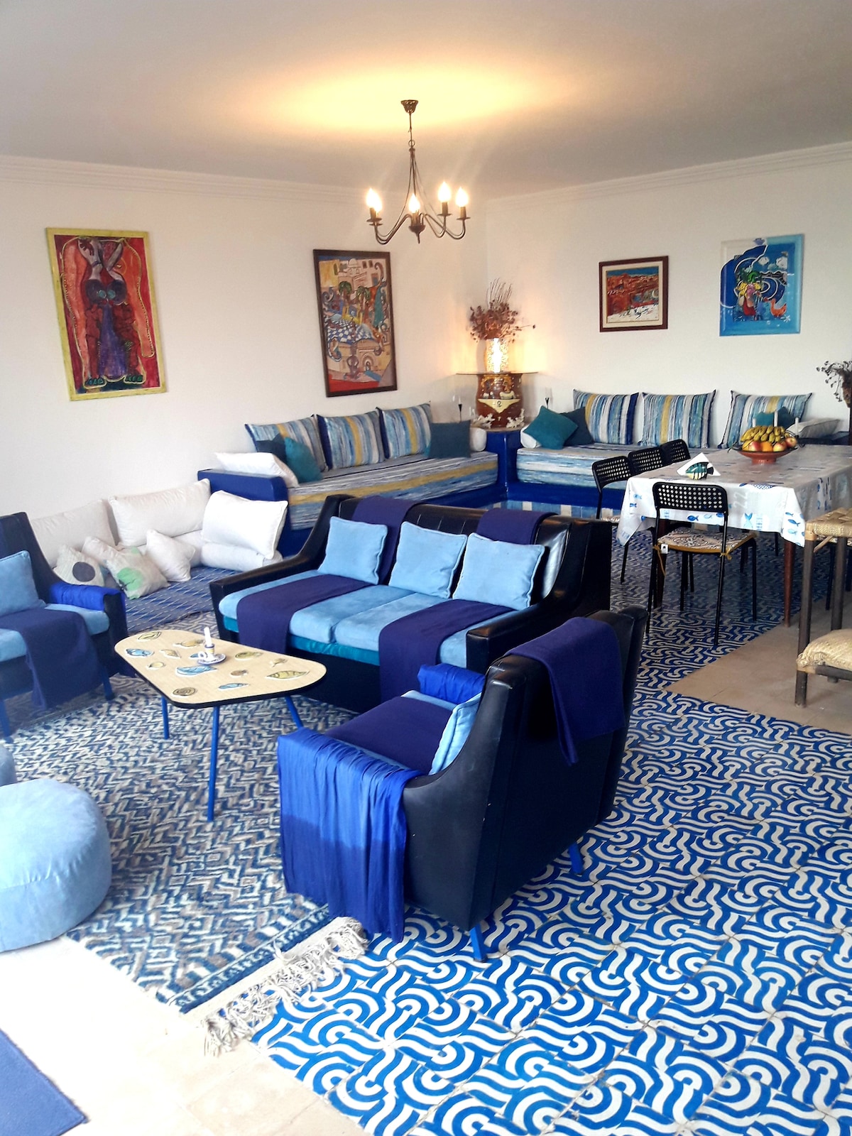 Розкішний пентхаус з панорамним видом на Атлантичний океан у центрі Тагазута. Унікальний та вишуканий будинок з увагою до деталей - від вишуканих матеріалів до дизайнерських меблів. У будинку 4 спальні, дві з двоспальними ліжками, одна з ванною кімнатою, спальня з двома односпальними ліжками та простора односпальна кімната. Велика вітальня з вікнами з видом на океан, обладнана кухня з видом на море та тераса з диванами, обіднім столом та барбекю. Готельне обслуговування за запитом.