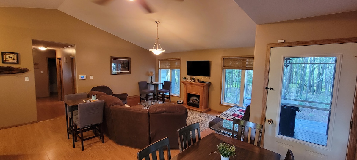 Цей затишний зруб - саме те, що ви уявляєте, коли хочете трохи відпочити на озері. Ви знаходитесь за кілька кроків від красивого озера за вхідними дверима. Ви можете провести час на озері або сидіти, дивлячись на красиве озеро під час читання книги. Ця зима настільки чудова для снігоходів, полювання або літніх веселощів. Зверніть увагу, що це наш сімейний будиночок і здавайте його в оренду лише для того, щоб інші люди могли його відчути. Для отримання додаткової інформації зв 'яжіться зі мною.