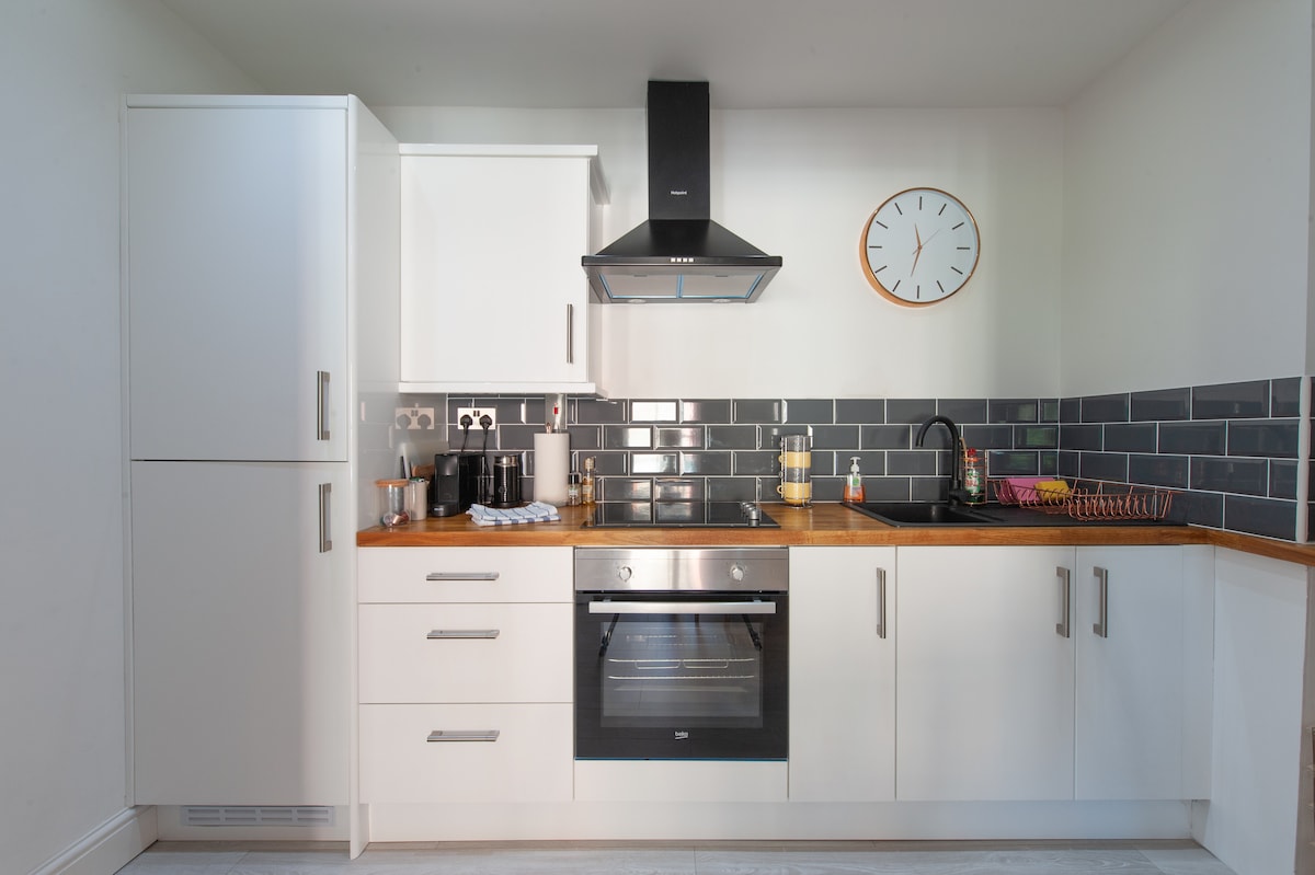 Зупиніться в центрі Веллса в Cuthbert's Corner – стильних дворівневих апартаментах-лофті. Це помешкання розташоване за декілька хвилин ходьби від собору Уеллса, ідеально підходить для пар, друзів або невеликих сімей. Насолоджуйтеся яскравим відкритим плануванням з вітальнею/обідньою зоною з телевізором Samsung Frame, а також добре обладнаною кухнею. Нагорі є ліжко розміру king-size, а також двоспальний диван-ліжко у вітальні, що вміщує до 4 осіб. Ідеально підходить для відпочинку на вихідних, весіль або дослідження Сомерсета, з усім необхідним поруч.