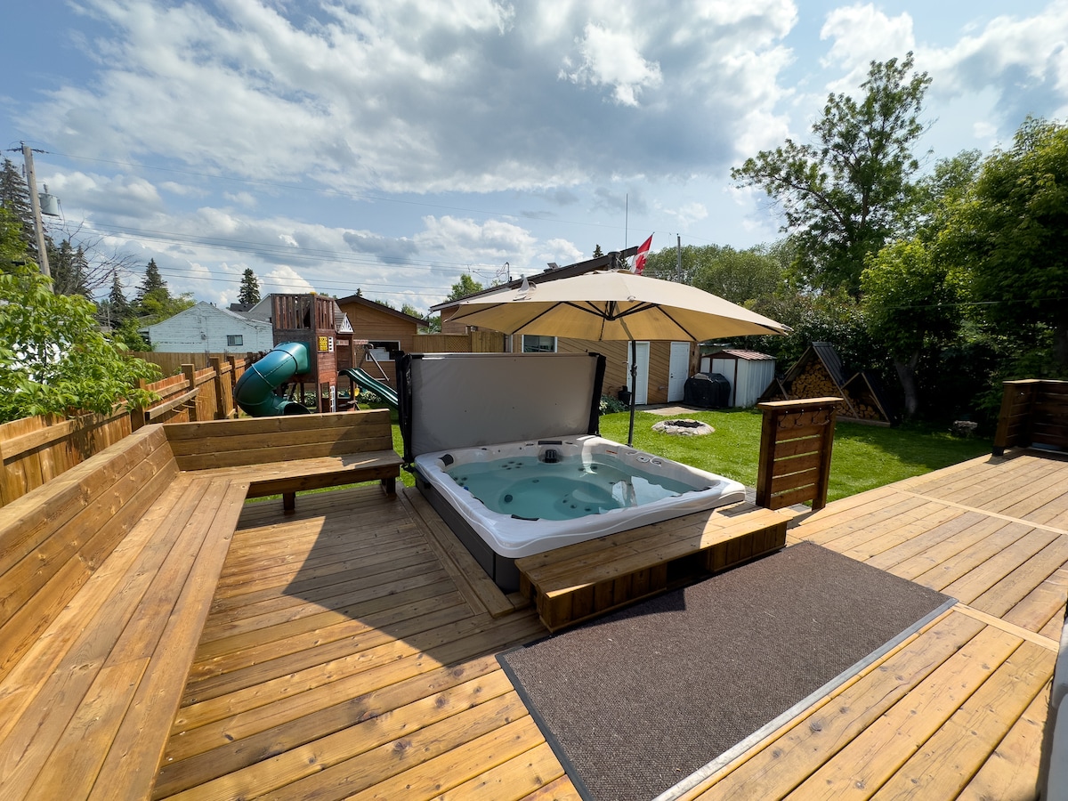 Відпочиньте на спокійному озері всього в 50 хвилинах на захід від Едмонтона. Прокиньтеся з видом на озеро прямо з ліжка! Відпочиньте в гідромасажній ванні на набережній, поїжте на вулиці в патіо біля озера або на абсолютно новій терасі. Насолоджуйтеся веселим кіновечором із попкорн-машиною в театральному стилі та 75-дюймовим смарт-телевізором. Познайомтеся з близькими в цьому помешканні для сімейного відпочинку. Відкриті вітальні з 'єднуються з кухнею та їдальнею, щоб кожен міг відчути себе включеним - і насолоджуватися краєвидами майже з кожного місця в помешканні!