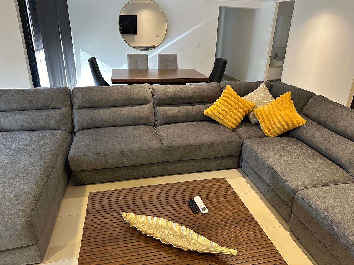 Красива сучасна квартира, повністю обладнана, ідеально підходить для короткого або тривалого перебування з сім 'єю або для ділових поїздок. Повністю обладнана кухня, 3 спальні, 2,5 ванні кімнати, телевізійна кімната, їдальня та тераса з неймовірним видом. У нас є кондиціонер у всіх зонах, басейн, цілодобова охорона та підземний паркінг на два автомобілі.