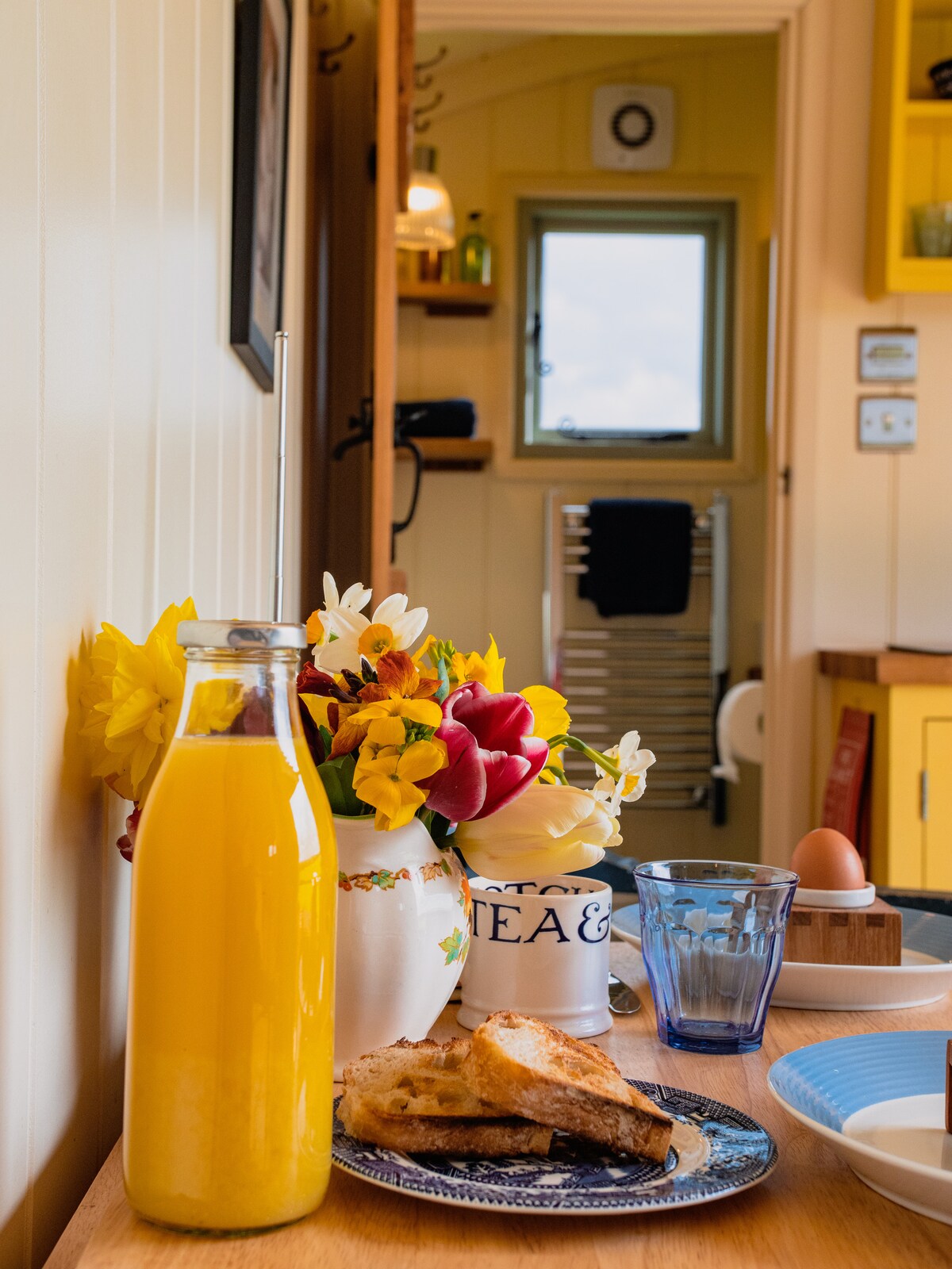 Tucked away in the Herefordshire countryside, our hand-crafted shepherd’s hut is a secluded retreat designed for couples seeking peace and privacy. Inside, enjoy a cosy wood burner, double bed, ensuite shower room and a thoughtfully equipped kitchen with breakfast bar. Outside, unwind in your private Scandinavian wood-fired hot tub beneath the stars. A perfect year-round escape to slow down, switch off and explore the Welsh borders.