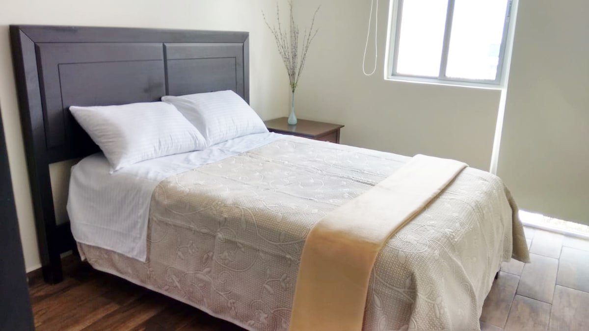 Since 2018, Un Lugar Tuyo en Cdmx means Total Trust and Exclusivity with your family or friends; comfort, cleanliness, zero urban noise, independence, tranquility, security and rest. It consists of a small dining room and kitchen, bathroom and bedroom with 2 beds + 1 single, in a condominium property. Located on the first floor. With access to Metrobus, Metro Bellas Artes, 12 minutes from the Zócalo. Your long stay will be more comfortable with weekly and monthly discounts. Welcome the world!