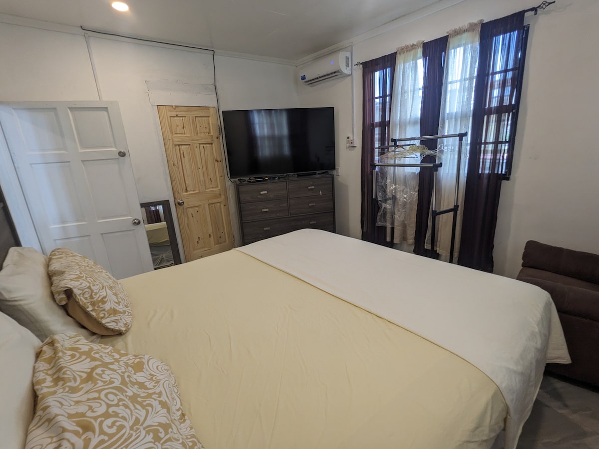 Ласкаво просимо до вашого помешкання далеко від дому! Ця повністю обладнана квартира з 1 спальнею пропонує комфорт, чистоту та спокій. Розташований за 5 хвилин від міжнародного аеропорту Огле та за 15 хвилин від ринку Стабрук у безпечному тихому районі з цілодобовим наглядом та охоронюваною парковкою. Незалежно від того, чи ви перебуваєте короткостроково, чи довгостроково, насолоджуйтеся швидким Wi-Fi, кондиціонером і затишним, добре обладнаним помешканням лише за кілька хвилин від ключових зручностей.