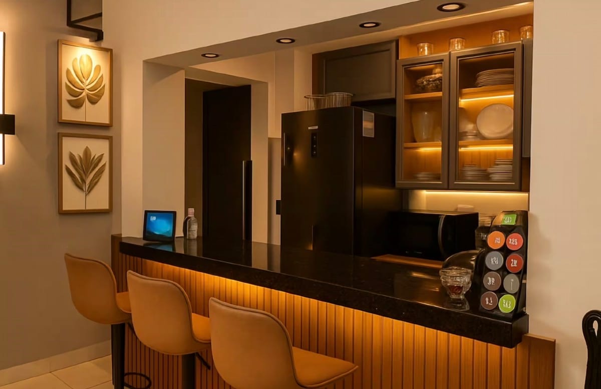 • Прикрашений і сучасний • Високий поверх • 2 апартаменти • Напівванна • Вітальня та їдальня • Повністю обладнана кухня • Балкон і пральня • 65-дюймовий телевізор із домашнім кінотеатром • Ігри • Кондиціонер • Інтернет • Прилади • Повний набір постільних речей • Цілодобова стійка реєстрації • Консьєрж • 2 паркувальні місця в тандемі • Повні зручності: басейн, корт для сквошу, зона для домашніх тварин, тренажерний зал, дитячий майданчик, лаунж для гурманів, сауна, коворкінг • Найкраще розташування; менше 10 хвилин від торгових центрів, лікарень, ринків та туристичних пам 'яток