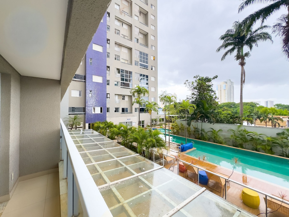 Aqui você vai se sentir em um lar. Condomínio completo e super familiar. Contém um lazer com academia, piscina, segurança 24h e área fitness. Localização privilegiada: 5 min do Setor Bueno, 23 min do Estádio Serra Dourada, 30 min da rodoviária e do aeroporto. Próximo a mercados, shopping, bancos, postos e ótimos restaurantes. A 2 min do Parque Cascavel e 5km do Vaca Brava. Apartamento com 2 camas de casal (uma suíte), + 1 colchão solteiro vista bonita do pôr do sol, andar 21 c/ tela de proteção.
