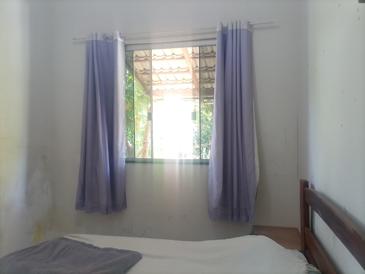 Chácara a 4,5 km da cidade de Goiás, na beira da pista, com estrutura para que possa se sentir em casa. Casa com tv, internet, sofá, geladeira, ventilador nos dois quartos, cozinha com utensílios basicos, 02 churrasqueiras, redes e ducha no quintal. Temos ainda o rio Vermelho e o corrego Paciência que passam no fundo da propriedade, a uns 350 metros da casa, sendo possível o acesso para banho. Para as noites mais frias nosso quintal possui um espaço para aquela fogueira!!!!