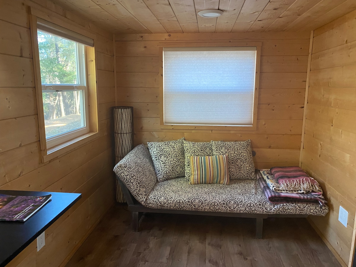Відпочинок у мінібудинку в приватному лісі – усамітнений, спокійний відпочинок Прокиньтеся серед високих дерев, вип'йте кави в тиші й відпочиньте під небом, повним зірок. Гості називають це місце прихованою перлиною – і це справді так. Усередині: затишне ліжко-лофт, повноцінна ванна кімната з гарячим душем, міні-кухня, Wi-Fi та місця для відпочинку надворі. Ретельно прибрано, комфортно, навмисно просто. Ідеально підходить для відпочинку наодинці або для пар — усього за декілька хвилин їзди до міста, але в іншому світі. Можна перебувати з невеликими собаками, які добре поводяться (20 $).