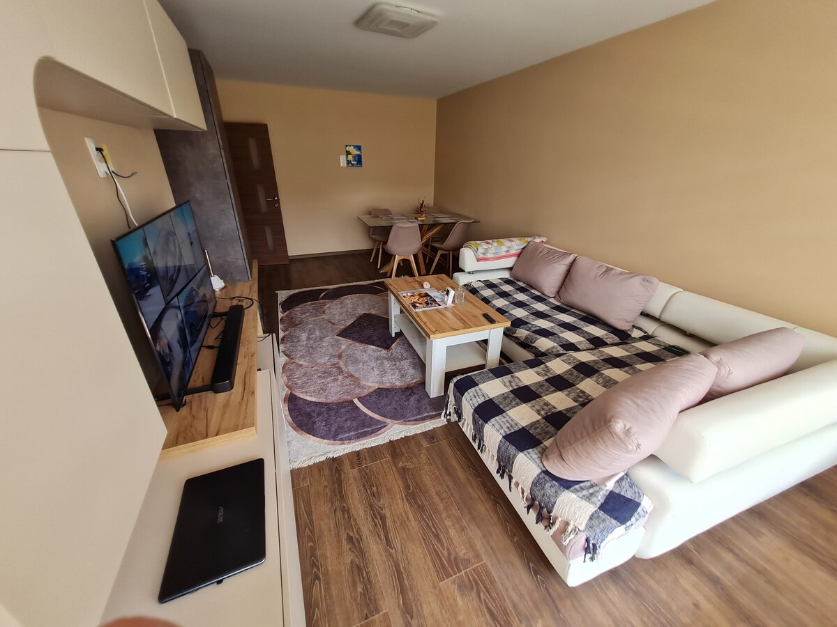 Ідеальне місце для відпочинку для людей, які подорожують до Греції, і для людей, які подорожують по району Пчінь. Близькість до шосе, безкоштовна парковка, високошвидкісний Інтернет, кабельне телебачення, тераса з прекрасними краєвидами лише кілька речей, які вас чекають. Квартира абсолютно нова з усіма новими речами. Не турбуйтеся про час прибуття та виїзду, ключ буде чекати на вас поруч із входом до квартири в будь-який час.